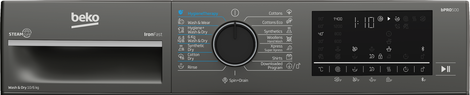 غساله اوتوماتيك بيكو 10 كيلو 1400 لفه / مجفف 6 ك رمادى شاشه ديجيتال بلوتوث BWD10640MCI 7175742500