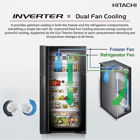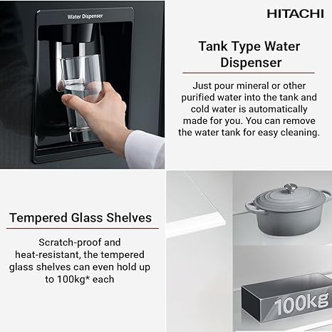 تلاجه هيتاشي 540 لتر اسود زجاج 4 باب